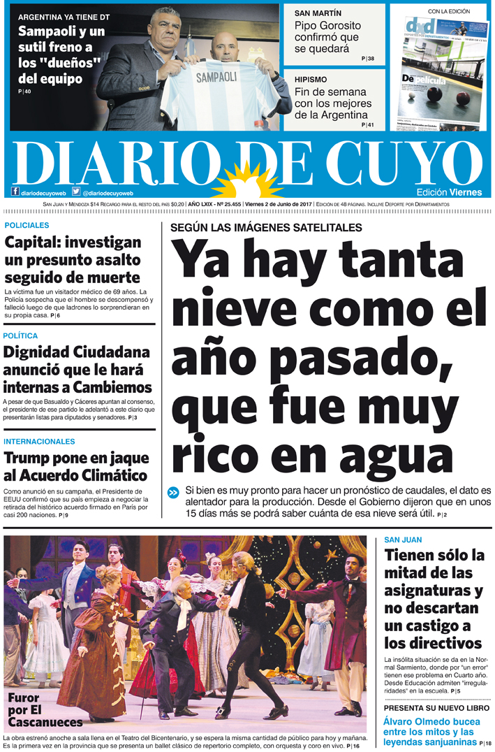 Diario de Cuyo | HOME | Noticias Tapa Edición 2 de Junio de 2017 Por Redacción Diario de Cuyo 01/06/2017 · 0:00 Escuchar la noticia Escuchar la noticia Your browser doesn’t support HTML5 audio Ver los comentarios ›