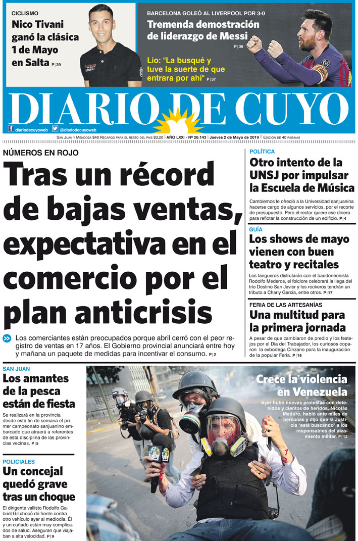 Diario de Cuyo | HOME | Noticias | Tapa Edición Tapa Edición 2 de Mayo 2019 Por Redacción Diario de Cuyo 01/05/2019 · 0:00 Escuchar la noticia Escuchar la noticia Your browser doesn’t support HTML5 audio Tapa Edición Ver los comentarios ›