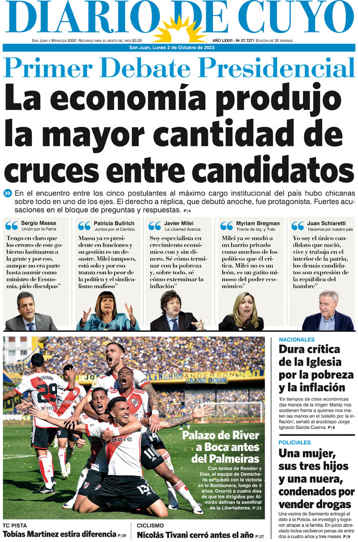 Diario de Cuyo | HOME | Noticias Tapa Edición 2 de Octubre de 2023 Por Redacción Diario de Cuyo 01/10/2023 · 0:00 Escuchar la noticia Escuchar la noticia Your browser doesn’t support HTML5 audio Ver los comentarios ›