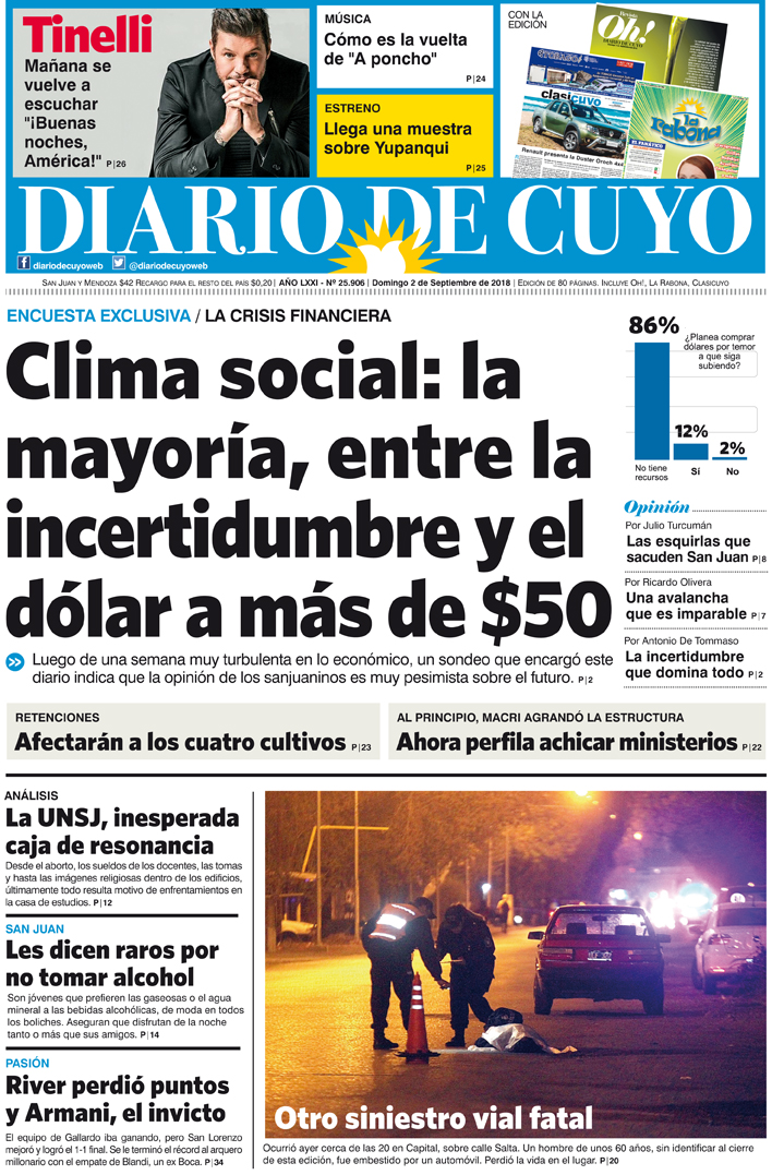 Diario de Cuyo | HOME | Noticias | Tapa Edición Tapa Edición 2 de Septiembre 2018 Por Redacción Diario de Cuyo 02/09/2018 · 0:00 Escuchar la noticia Escuchar la noticia Your browser doesn’t support HTML5 audio Tapa Edición Ver los comentarios ›