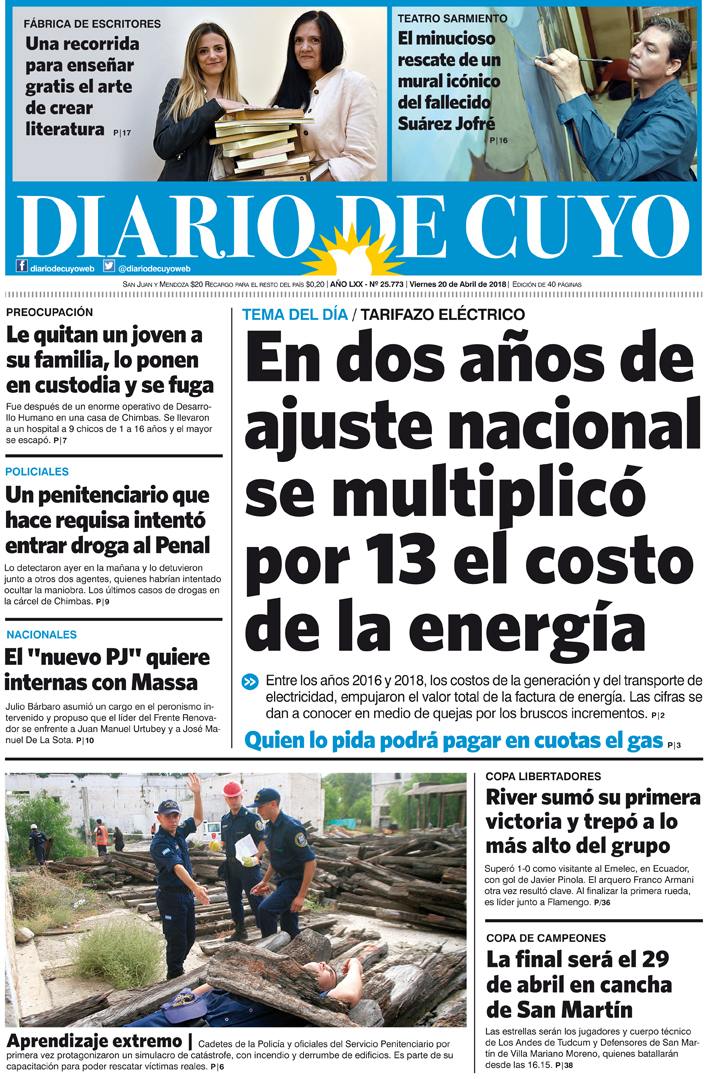 Diario de Cuyo | HOME | Noticias | Tapa Edición Tapa Edición 20 de Abril 2018 Por Redacción Diario de Cuyo 19/04/2018 · 0:00 Escuchar la noticia Escuchar la noticia Your browser doesn’t support HTML5 audio Tapa Edición Ver los comentarios ›