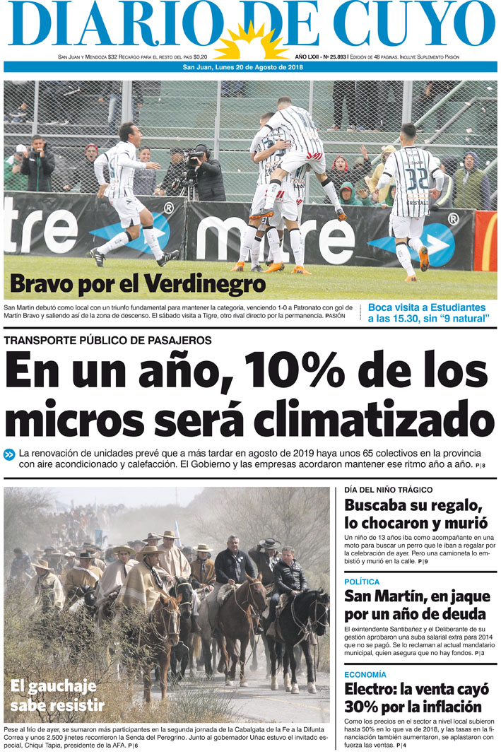 Diario de Cuyo | HOME | Noticias | Tapa Edición Tapa Edición 20 de Agosto de 2018 Por Redacción Diario de Cuyo 19/08/2018 · 0:00 Escuchar la noticia Escuchar la noticia Your browser doesn’t support HTML5 audio Tapa Edición Ver los comentarios ›