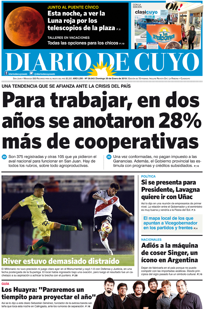 Diario de Cuyo | HOME | Noticias | Tapa Edición Tapa Edición 20 de Enero de 2019 Por Redacción Diario de Cuyo 20/01/2019 · 0:00 Escuchar la noticia Escuchar la noticia Your browser doesn’t support HTML5 audio Tapa Edición Ver los comentarios ›