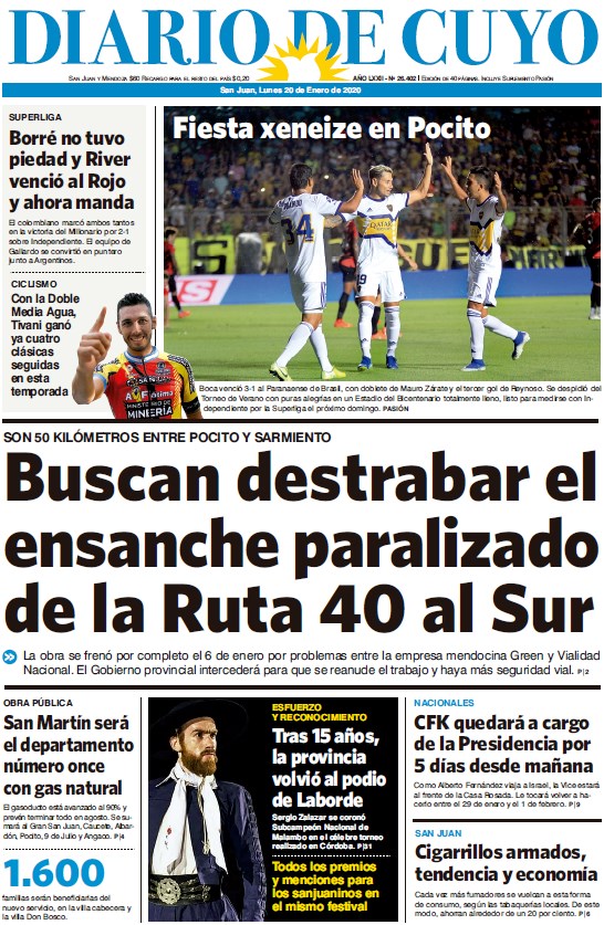 Diario de Cuyo | HOME | Noticias Tapa Edición 20 de Enero de 2020 Por Redacción Diario de Cuyo 20/01/2020 · 0:00 Escuchar la noticia Escuchar la noticia Your browser doesn’t support HTML5 audio Ver los comentarios ›
