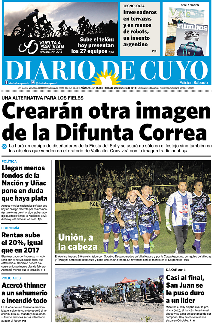 Diario de Cuyo | HOME | Noticias | Tapa Edición Tapa Edición 20 de Enero del 2018 Por Redacción Diario de Cuyo 20/01/2018 · 0:00 Escuchar la noticia Escuchar la noticia Your browser doesn’t support HTML5 audio Tapa Edición Ver los comentarios ›