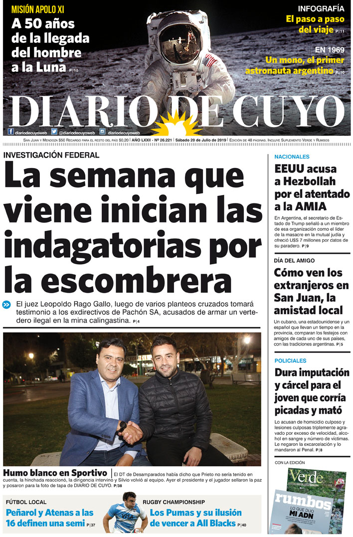 Diario de Cuyo | HOME | Noticias | Tapa Edición Tapa Edición 20 de Julio de 2019 Por Redacción Diario de Cuyo 20/07/2019 · 0:00 Escuchar la noticia Escuchar la noticia Your browser doesn’t support HTML5 audio Tapa Edición Ver los comentarios ›