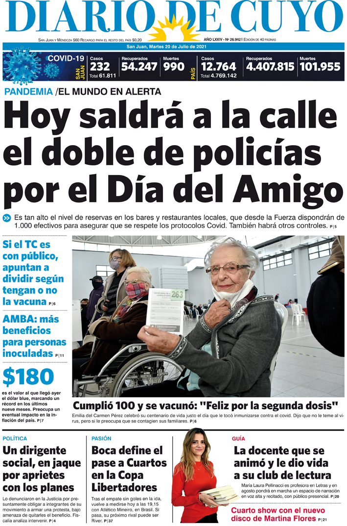 Diario de Cuyo | HOME | Noticias Tapa Edición 20 de Julio del 2021 Por Redacción Diario de Cuyo 19/07/2021 · 0:00 Escuchar la noticia Escuchar la noticia Your browser doesn’t support HTML5 audio Ver los comentarios ›