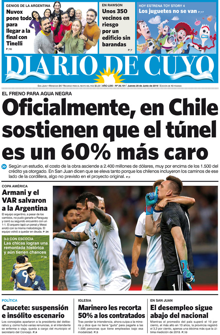 Diario de Cuyo | HOME | Noticias | Tapa Edición Tapa Edición 20 de Junio 2019 Por Redacción Diario de Cuyo 19/06/2019 · 0:00 Escuchar la noticia Escuchar la noticia Your browser doesn’t support HTML5 audio Tapa Edición Ver los comentarios ›