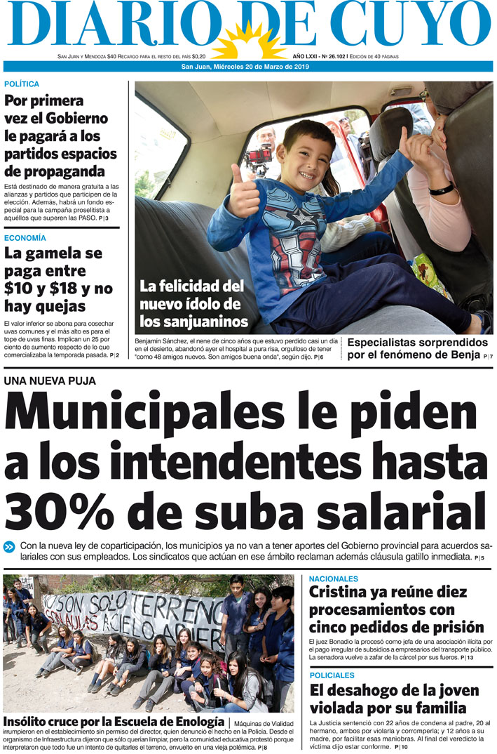 Diario de Cuyo | HOME | Noticias | Tapa Edición Tapa Edición 20 de Marzo 2019 Por Redacción Diario de Cuyo 19/03/2019 · 0:00 Escuchar la noticia Escuchar la noticia Your browser doesn’t support HTML5 audio Tapa Edición Ver los comentarios ›