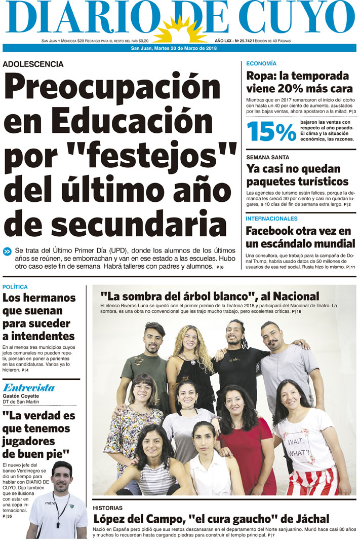 Diario de Cuyo | HOME | Noticias | Tapa Edición Tapa Edición 20 de Marzo del 2018 Por Redacción Diario de Cuyo 19/03/2018 · 0:00 Escuchar la noticia Escuchar la noticia Your browser doesn’t support HTML5 audio Tapa Edición Ver los comentarios ›