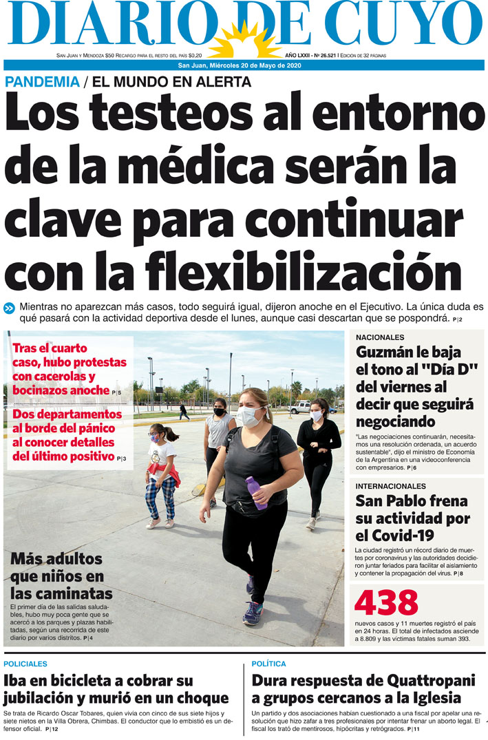 Diario de Cuyo | HOME | Noticias Tapa Edición 20 de Mayo del 2020 Por Redacción Diario de Cuyo 19/05/2020 · 0:00 Escuchar la noticia Escuchar la noticia Your browser doesn’t support HTML5 audio Ver los comentarios ›