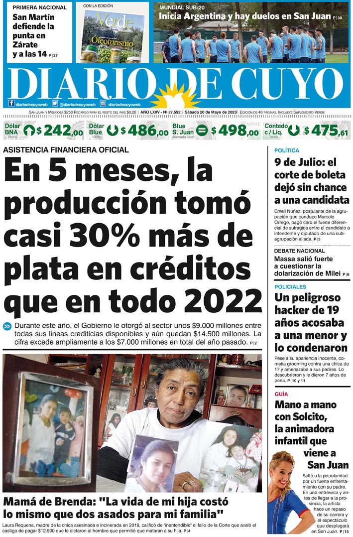 Diario de Cuyo | HOME | Noticias Tapa Edición 20 de Mayo del 2023 Por Redacción Diario de Cuyo 19/05/2023 · 0:00 Escuchar la noticia Escuchar la noticia Your browser doesn’t support HTML5 audio Ver los comentarios ›