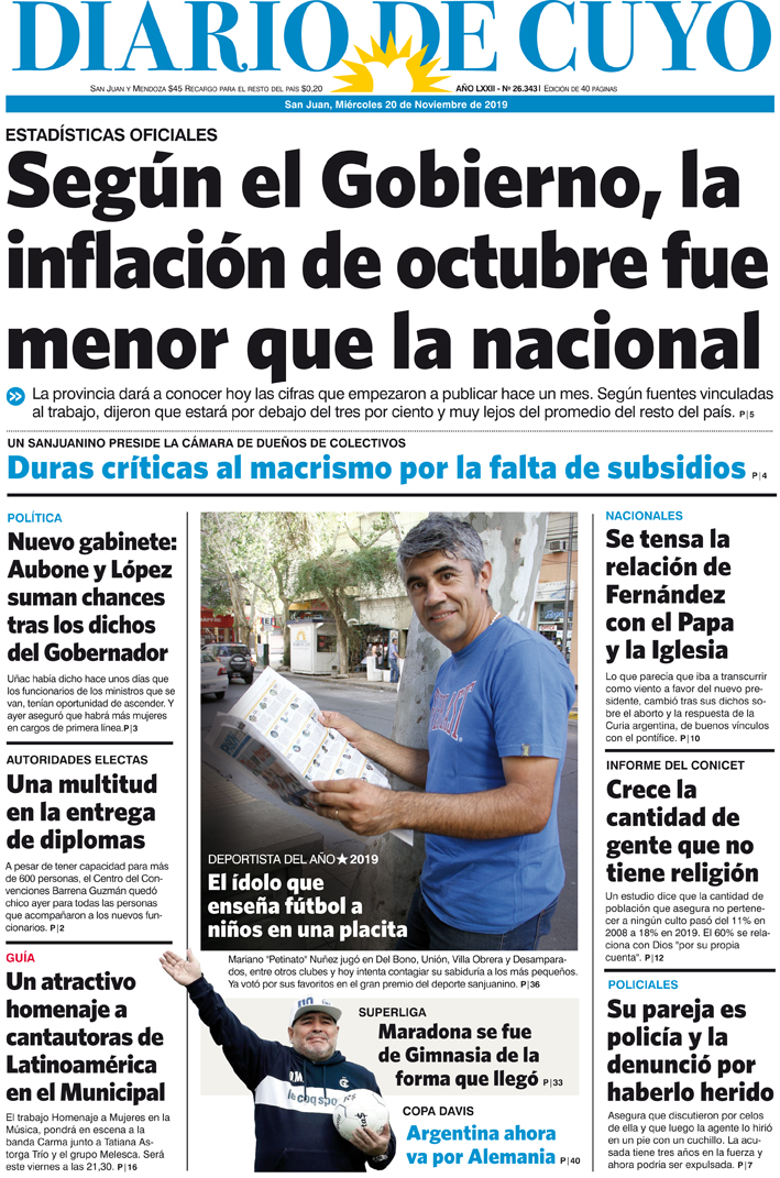 Diario de Cuyo | HOME | Noticias | Tapa Edición Tapa Edición 20 de Noviembre de 2019 Por Redacción Diario de Cuyo 19/11/2019 · 0:00 Escuchar la noticia Escuchar la noticia Your browser doesn’t support HTML5 audio Tapa Edición Ver los comentarios ›
