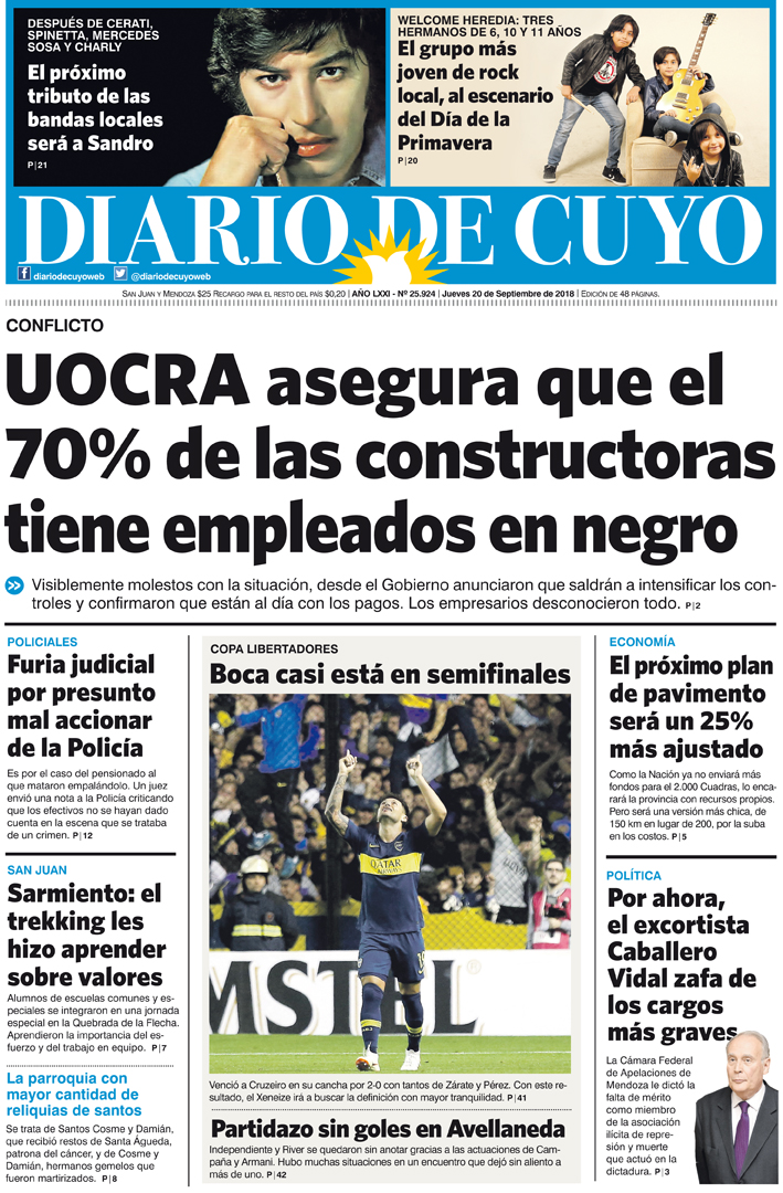 Diario de Cuyo | HOME | Noticias | Tapa Edición Tapa Edición 20 de Septiembre 2018 Por Redacción Diario de Cuyo 20/09/2018 · 0:00 Escuchar la noticia Escuchar la noticia Your browser doesn’t support HTML5 audio Tapa Edición Ver los comentarios ›