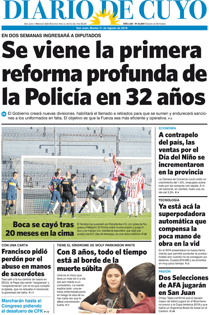 Diario de Cuyo | HOME | Noticias | Tapa Edición Tapa Edición 21 de Agosto 2018 Por Redacción Diario de Cuyo 20/08/2018 · 0:00 Escuchar la noticia Escuchar la noticia Your browser doesn’t support HTML5 audio Tapa Edición Ver los comentarios ›