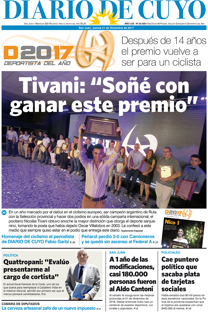 Diario de Cuyo | HOME | Noticias | Tapa Edición Tapa Edición 21 de Diciembre de 2017 Por Redacción Diario de Cuyo 21/12/2017 · 0:00 Escuchar la noticia Escuchar la noticia Your browser doesn’t support HTML5 audio Tapa Edición Ver los comentarios ›
