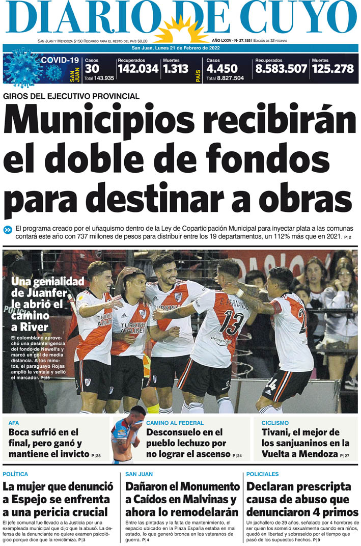 Diario de Cuyo | HOME | Noticias Tapa Edición 21 de Febrero del 2022 Por Redacción Diario de Cuyo 21/02/2022 · 0:00 Escuchar la noticia Escuchar la noticia Your browser doesn’t support HTML5 audio Ver los comentarios ›