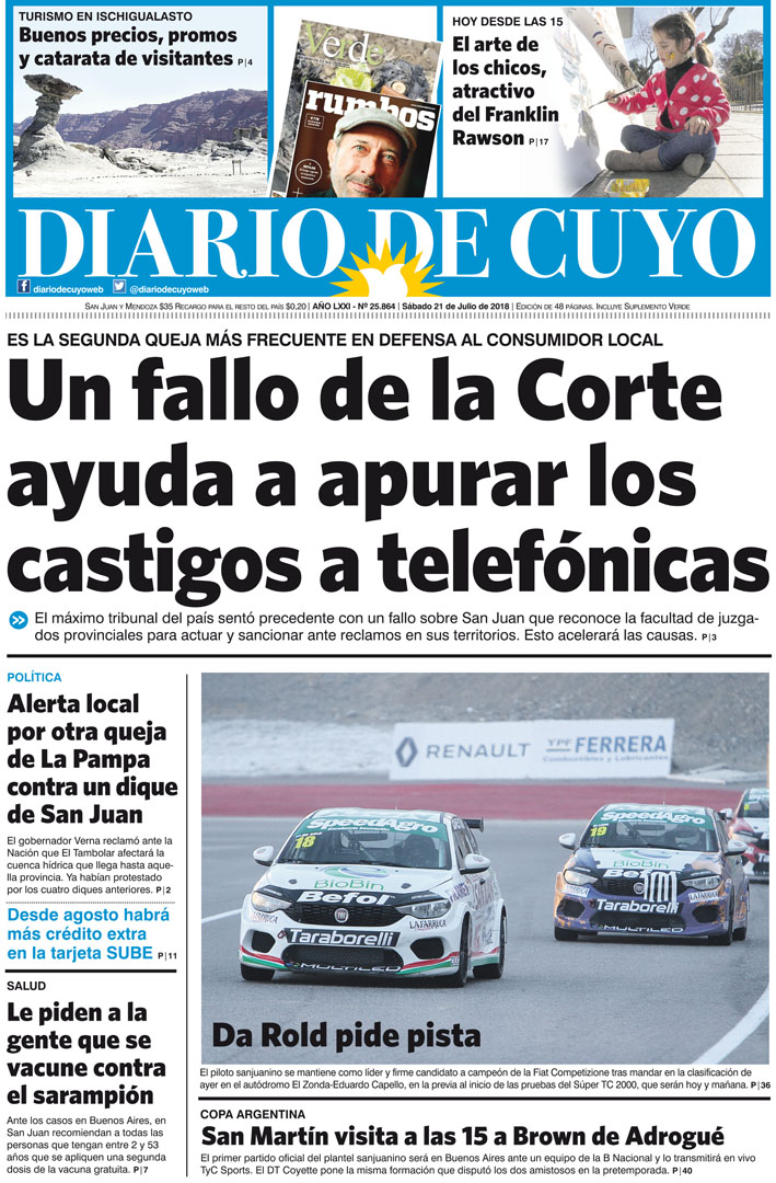 Diario de Cuyo | HOME | Noticias | Tapa Edición Tapa Edición 21 de Julio 2018 Por Redacción Diario de Cuyo 20/07/2018 · 0:00 Escuchar la noticia Escuchar la noticia Your browser doesn’t support HTML5 audio Tapa Edición Ver los comentarios ›
