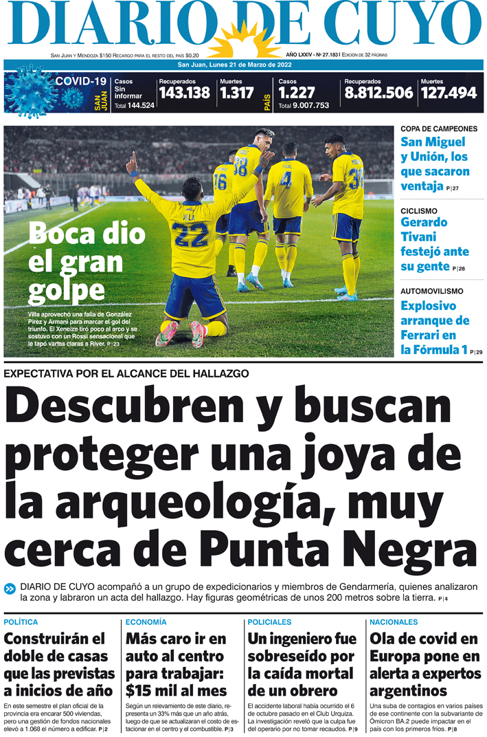 Diario de Cuyo | HOME | Noticias Tapa Edición 21 de Marzo del 2022 Por Redacción Diario de Cuyo 20/03/2022 · 0:00 Escuchar la noticia Escuchar la noticia Your browser doesn’t support HTML5 audio Ver los comentarios ›