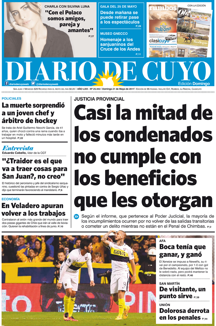 Diario de Cuyo | HOME | Noticias Tapa Edición 21 de Mayo del 2017 Por Redacción Diario de Cuyo 21/05/2017 · 0:00 Escuchar la noticia Escuchar la noticia Your browser doesn’t support HTML5 audio Ver los comentarios ›