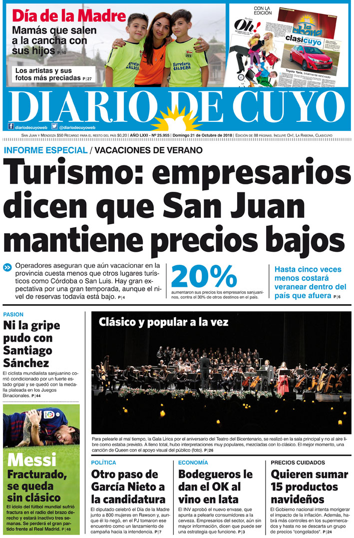 Diario de Cuyo | HOME | Noticias | Tapa Edición Tapa Edición 21 de Octubre 2018 Por Redacción Diario de Cuyo 20/10/2018 · 0:00 Escuchar la noticia Escuchar la noticia Your browser doesn’t support HTML5 audio Tapa Edición Ver los comentarios ›