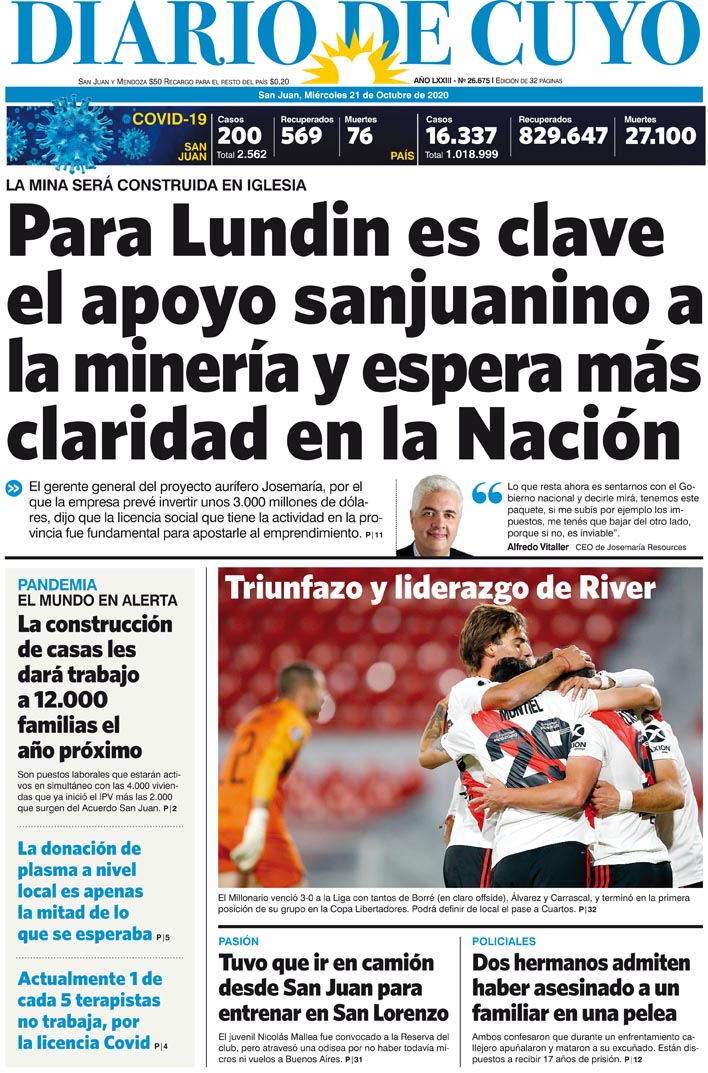 Diario de Cuyo | HOME | Noticias | Tapa Edición Tapa Edición 21 de Octubre de 2020 Por Redacción Diario de Cuyo 20/10/2020 · 0:00 Escuchar la noticia Escuchar la noticia Your browser doesn’t support HTML5 audio Tapa Edición Ver los comentarios ›