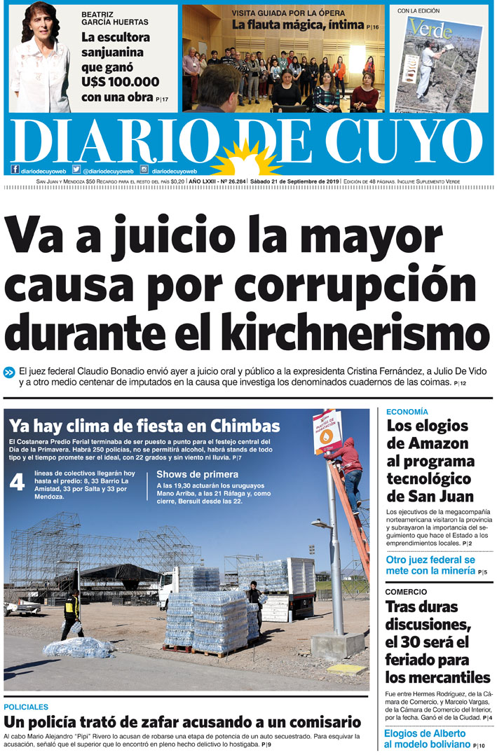 Diario de Cuyo | HOME | Noticias | Tapa Edición Tapa Edición 21 de Septiembre 2019 Por Redacción Diario de Cuyo 20/09/2019 · 0:00 Escuchar la noticia Escuchar la noticia Your browser doesn’t support HTML5 audio Tapa Edición Ver los comentarios ›