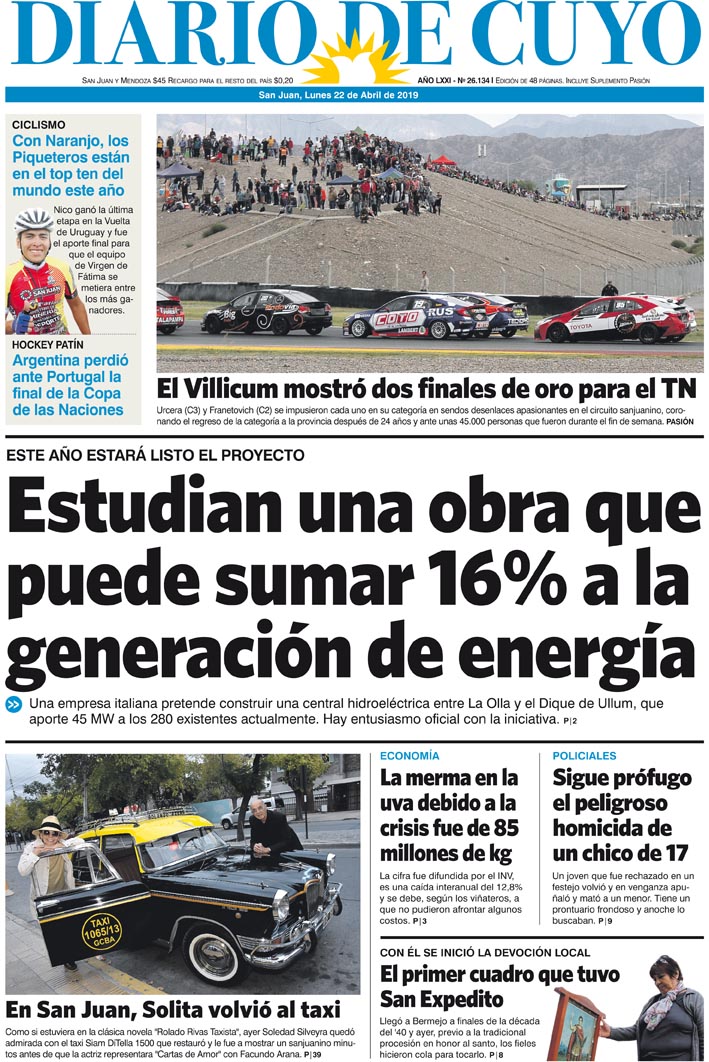 Diario de Cuyo | HOME | Noticias | Tapa Edición Tapa Edición 22 de Abril de 2019 Por Redacción Diario de Cuyo 21/04/2019 · 0:00 Escuchar la noticia Escuchar la noticia Your browser doesn’t support HTML5 audio Tapa Edición Ver los comentarios ›