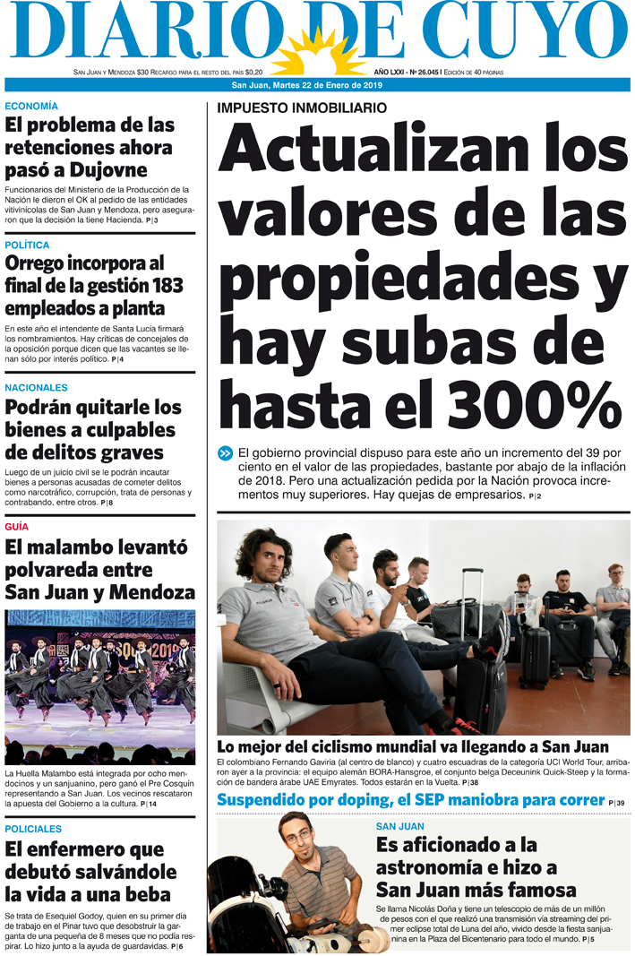 Diario de Cuyo | HOME | Noticias | Tapa Edición Tapa Edición 22 de Enero de 2019 Por Redacción Diario de Cuyo 22/01/2019 · 0:00 Escuchar la noticia Escuchar la noticia Your browser doesn’t support HTML5 audio Tapa Edición Ver los comentarios ›