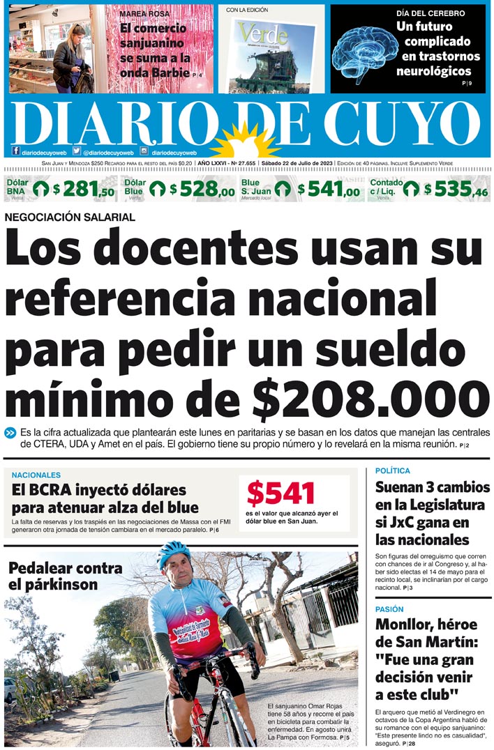 Diario de Cuyo | HOME | Noticias Tapa Edición 22 de Julio del 2023 Por Redacción Diario de Cuyo 21/07/2023 · 0:00 Escuchar la noticia Escuchar la noticia Your browser doesn’t support HTML5 audio Ver los comentarios ›