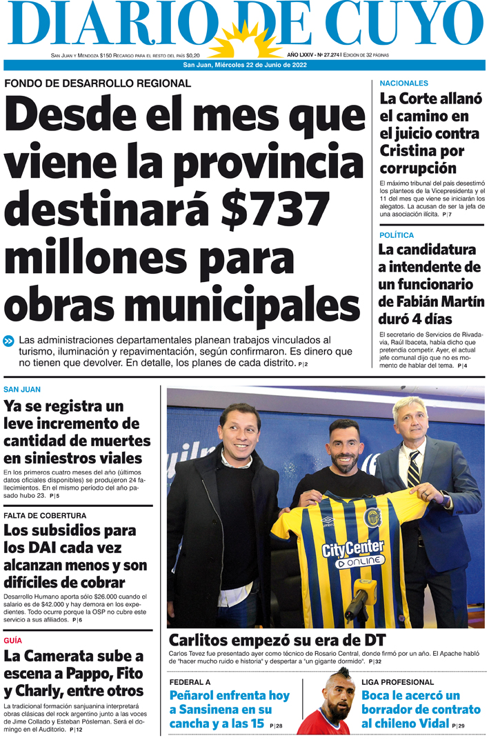 Diario de Cuyo | HOME | Noticias Tapa Edición 22 de Junio del 2022 Por Redacción Diario de Cuyo 21/06/2022 · 0:00 Escuchar la noticia Escuchar la noticia Your browser doesn’t support HTML5 audio Ver los comentarios ›