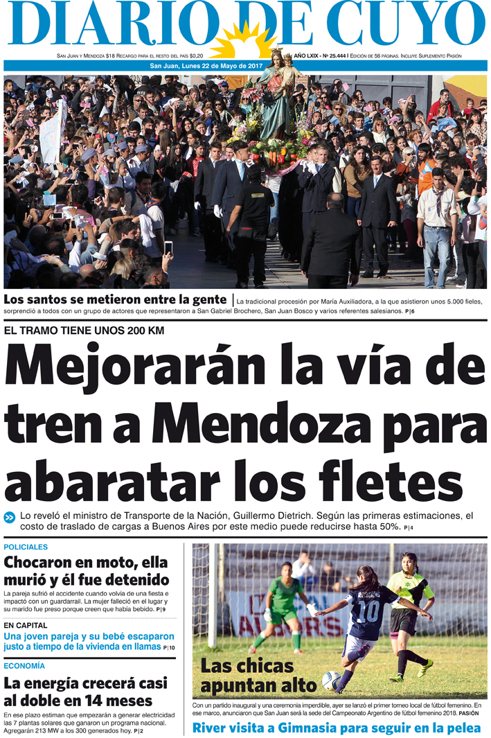 Diario de Cuyo | HOME | Noticias Tapa Edición 22 de Mayo de 2017 Por Redacción Diario de Cuyo 22/05/2017 · 0:00 Escuchar la noticia Escuchar la noticia Your browser doesn’t support HTML5 audio Ver los comentarios ›