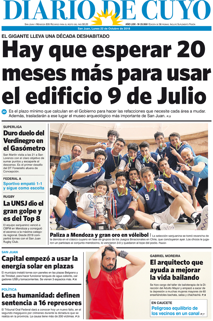 Diario de Cuyo | HOME | Noticias | Tapa Edición Tapa Edición 22 de Octubre de 2018 Por Redacción Diario de Cuyo 22/10/2018 · 0:00 Escuchar la noticia Escuchar la noticia Your browser doesn’t support HTML5 audio Tapa Edición Ver los comentarios ›
