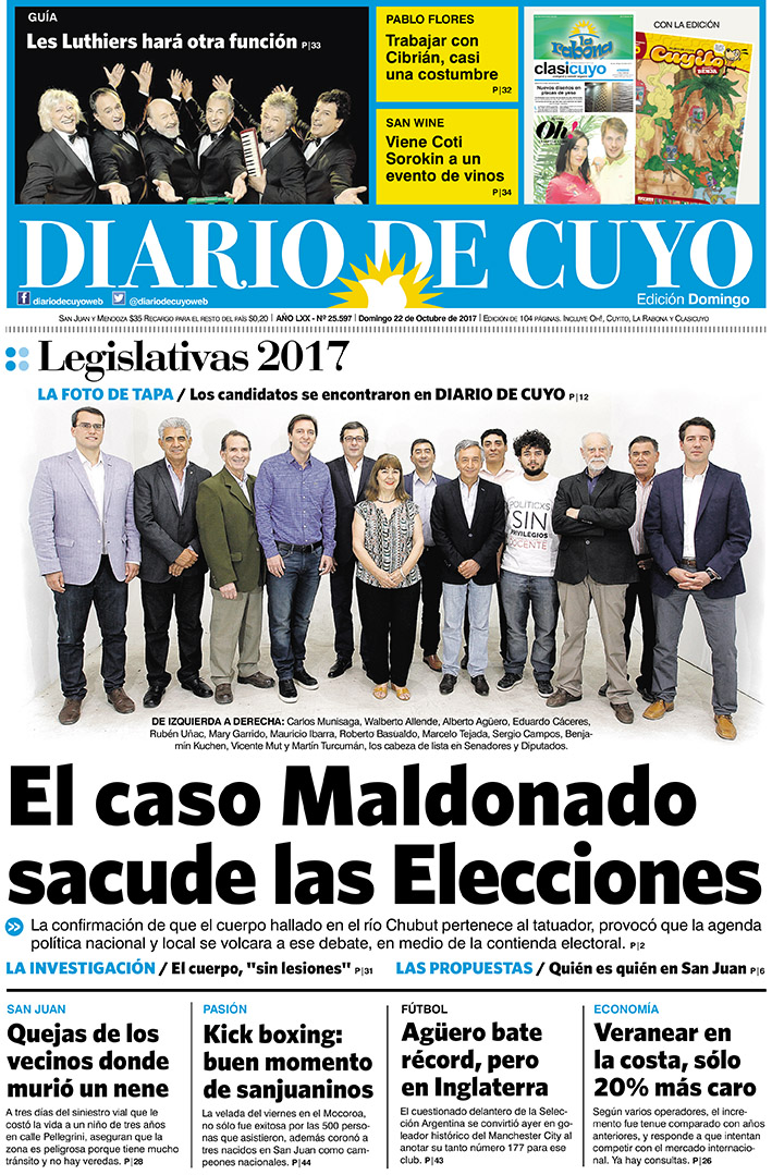Diario de Cuyo | HOME | Noticias | Tapa Edición Tapa Edición 22 de Octubre del 2017 Por Redacción Diario de Cuyo 21/10/2017 · 0:00 Escuchar la noticia Escuchar la noticia Your browser doesn’t support HTML5 audio Tapa Edición Ver los comentarios ›