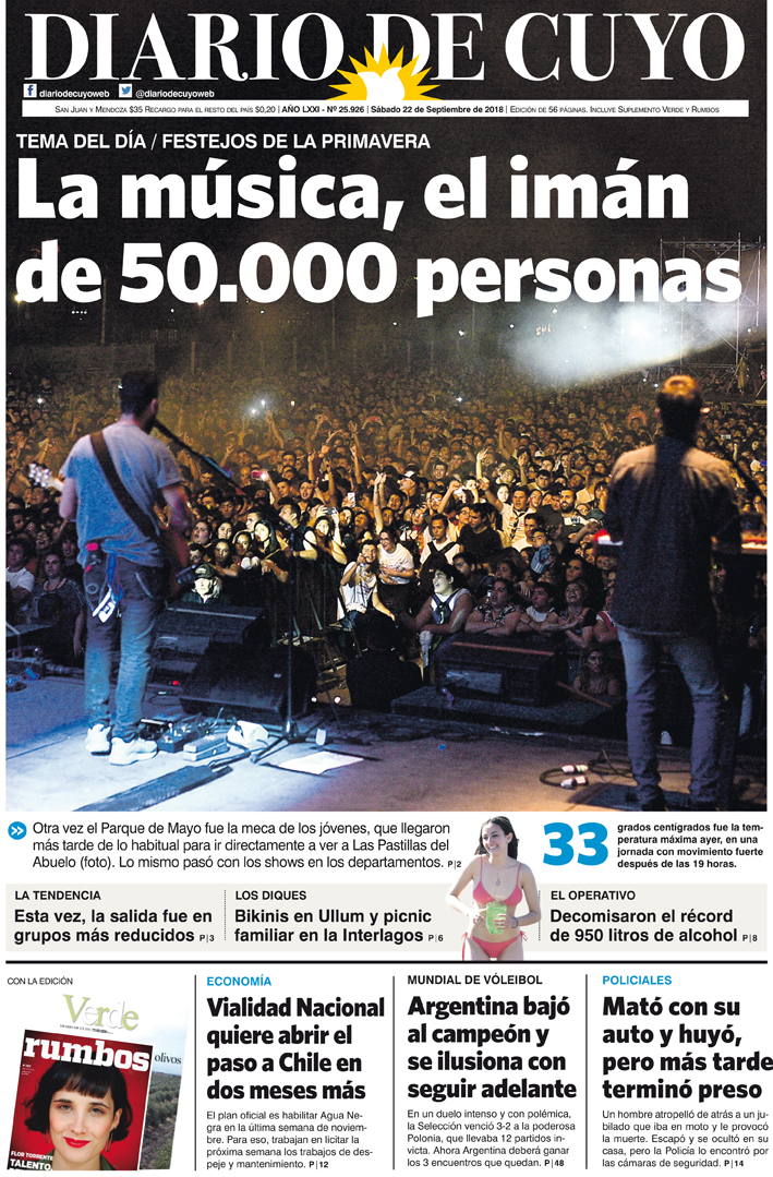 Diario de Cuyo | HOME | Noticias | Tapa Edición Tapa Edición 22 de Septiembre 2018 Por Redacción Diario de Cuyo 22/09/2018 · 0:00 Escuchar la noticia Escuchar la noticia Your browser doesn’t support HTML5 audio Tapa Edición Ver los comentarios ›