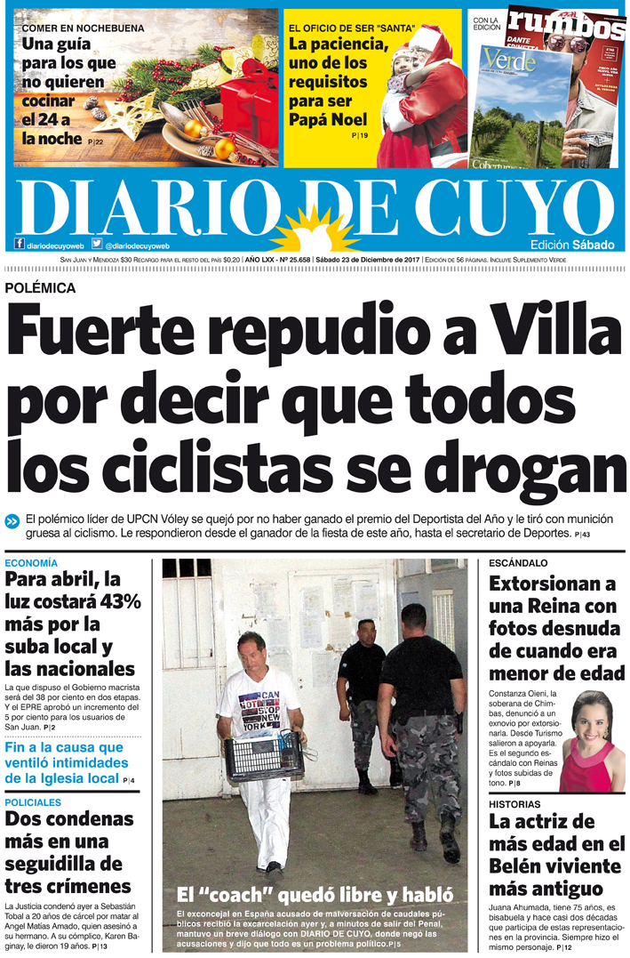 Diario de Cuyo | HOME | Noticias | Tapa Edición Tapa Edición 23 de Diciembre de 2017 Por Redacción Diario de Cuyo 22/12/2017 · 0:00 Escuchar la noticia Escuchar la noticia Your browser doesn’t support HTML5 audio Tapa Edición Ver los comentarios ›