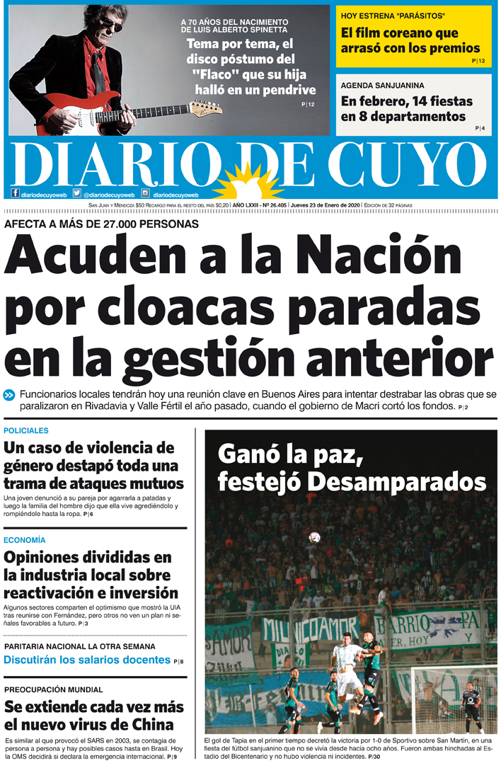 Diario de Cuyo | HOME | Noticias | Tapa Edición Tapa Edición 23 de Enero de 2020 Por Redacción Diario de Cuyo 23/01/2020 · 0:00 Escuchar la noticia Escuchar la noticia Your browser doesn’t support HTML5 audio Tapa Edición Ver los comentarios ›