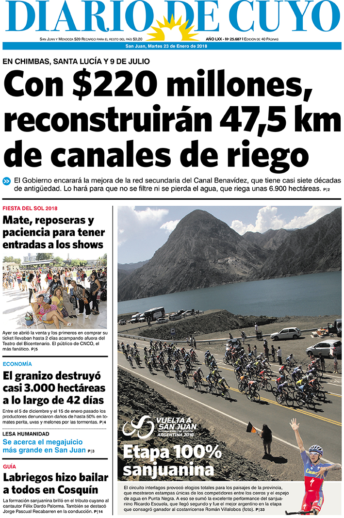 Diario de Cuyo | HOME | Noticias | Tapa Edición Tapa Edición 23 de Enero del 2018 Por Redacción Diario de Cuyo 22/01/2018 · 0:00 Escuchar la noticia Escuchar la noticia Your browser doesn’t support HTML5 audio Tapa Edición Ver los comentarios ›