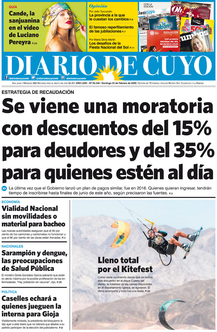 Diario de Cuyo | HOME | Noticias Tapa Edición 23 de Febrero del 2020 Por Redacción Diario de Cuyo 22/02/2020 · 0:00 Escuchar la noticia Escuchar la noticia Your browser doesn’t support HTML5 audio Ver los comentarios ›