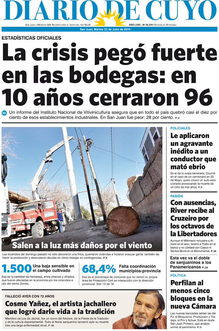 Diario de Cuyo | HOME | Noticias | Tapa Edición Tapa Edición 23 de Julio 2019 Por Redacción Diario de Cuyo 22/07/2019 · 0:00 Escuchar la noticia Escuchar la noticia Your browser doesn’t support HTML5 audio Tapa Edición Ver los comentarios ›