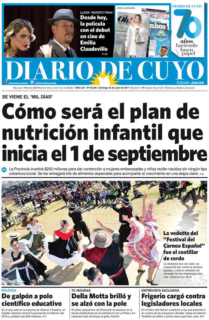 Diario de Cuyo | HOME | Noticias Tapa Edición 23 de Julio de 2017 Por Redacción Diario de Cuyo 23/07/2017 · 0:00 Escuchar la noticia Escuchar la noticia Your browser doesn’t support HTML5 audio Ver los comentarios ›
