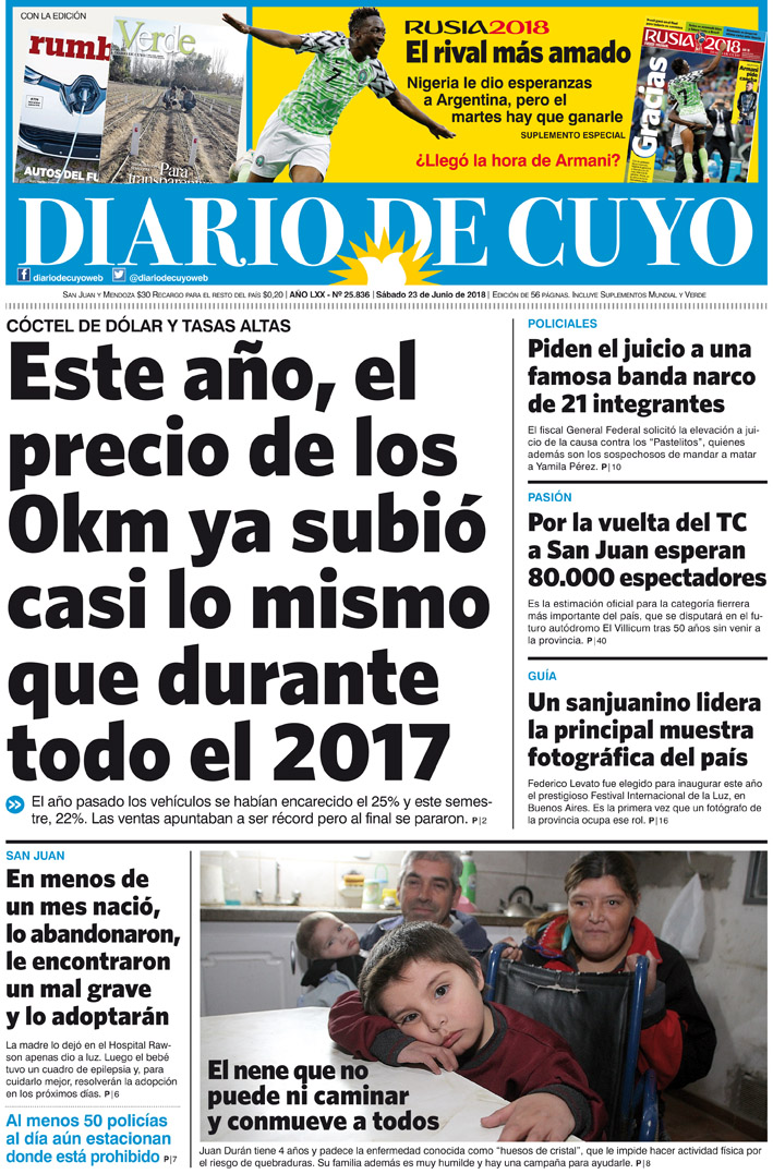 Diario de Cuyo | HOME | Noticias | Tapa Edición Tapa Edición 23 de Junio 2018 Por Redacción Diario de Cuyo 22/06/2018 · 0:00 Escuchar la noticia Escuchar la noticia Your browser doesn’t support HTML5 audio Tapa Edición Ver los comentarios ›