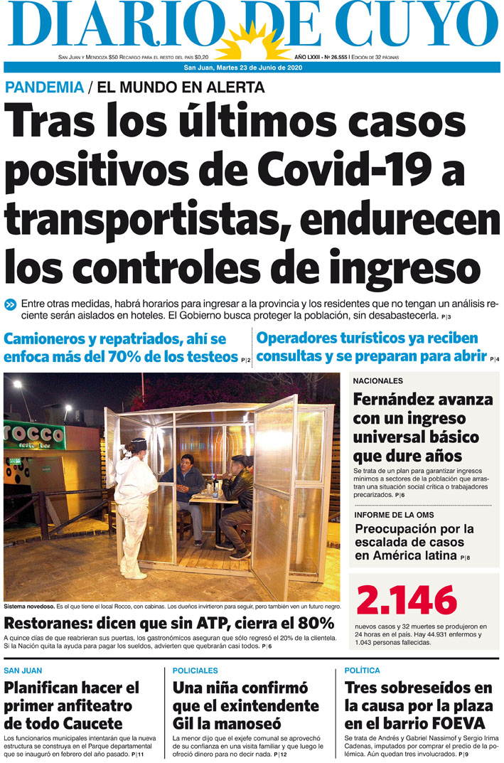 Diario de Cuyo | HOME | Noticias Tapa Edición 23 de Junio del 2020 Por Redacción Diario de Cuyo 22/06/2020 · 0:00 Escuchar la noticia Escuchar la noticia Your browser doesn’t support HTML5 audio Ver los comentarios ›
