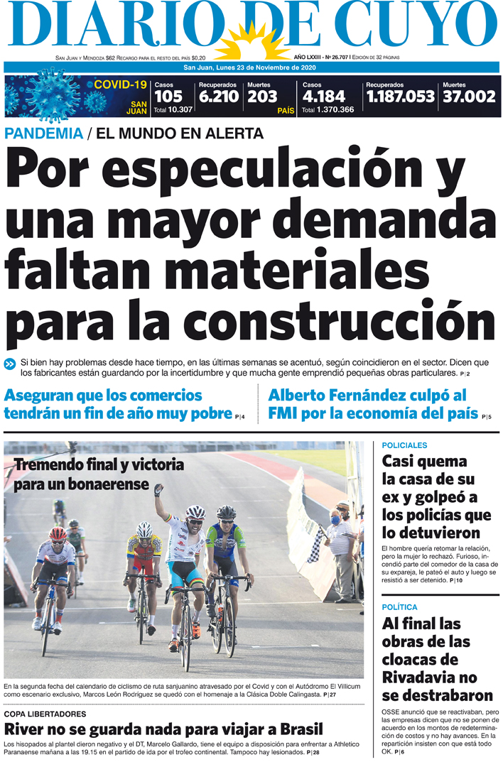 Diario de Cuyo | HOME | Noticias Tapa Edición 23 de Noviembre del 2020 Por Redacción Diario de Cuyo 22/11/2020 · 0:00 Escuchar la noticia Escuchar la noticia Your browser doesn’t support HTML5 audio Ver los comentarios ›
