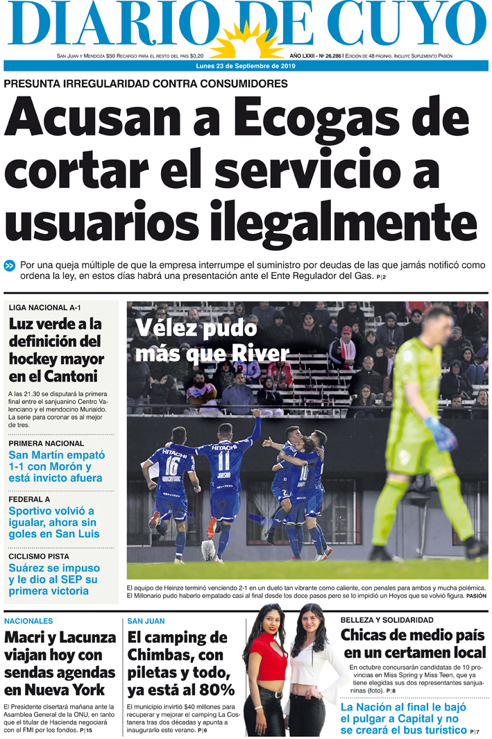 Diario de Cuyo | HOME | Noticias | Tapa Edición Tapa Edición 23 de Septiembre de 2019 Por Redacción Diario de Cuyo 22/09/2019 · 0:00 Escuchar la noticia Escuchar la noticia Your browser doesn’t support HTML5 audio Tapa Edición Ver los comentarios ›
