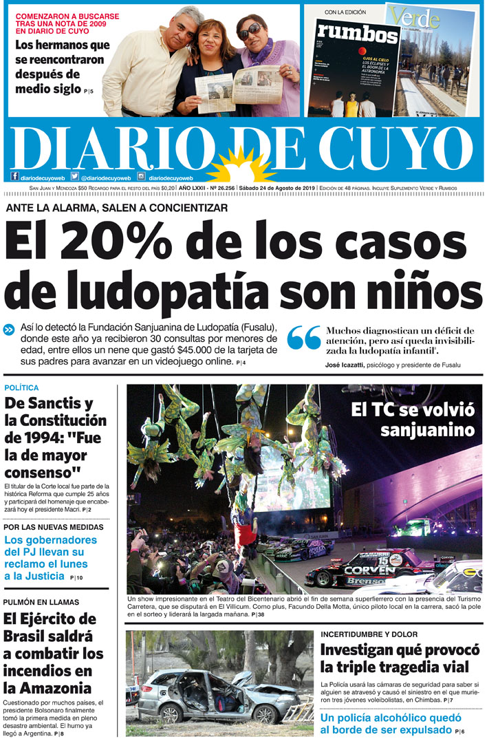 Diario de Cuyo | HOME | Noticias | Tapa Edición Tapa Edición 24 de Agosto 2019 Por Redacción Diario de Cuyo 23/08/2019 · 0:00 Escuchar la noticia Escuchar la noticia Your browser doesn’t support HTML5 audio Tapa Edición Ver los comentarios ›