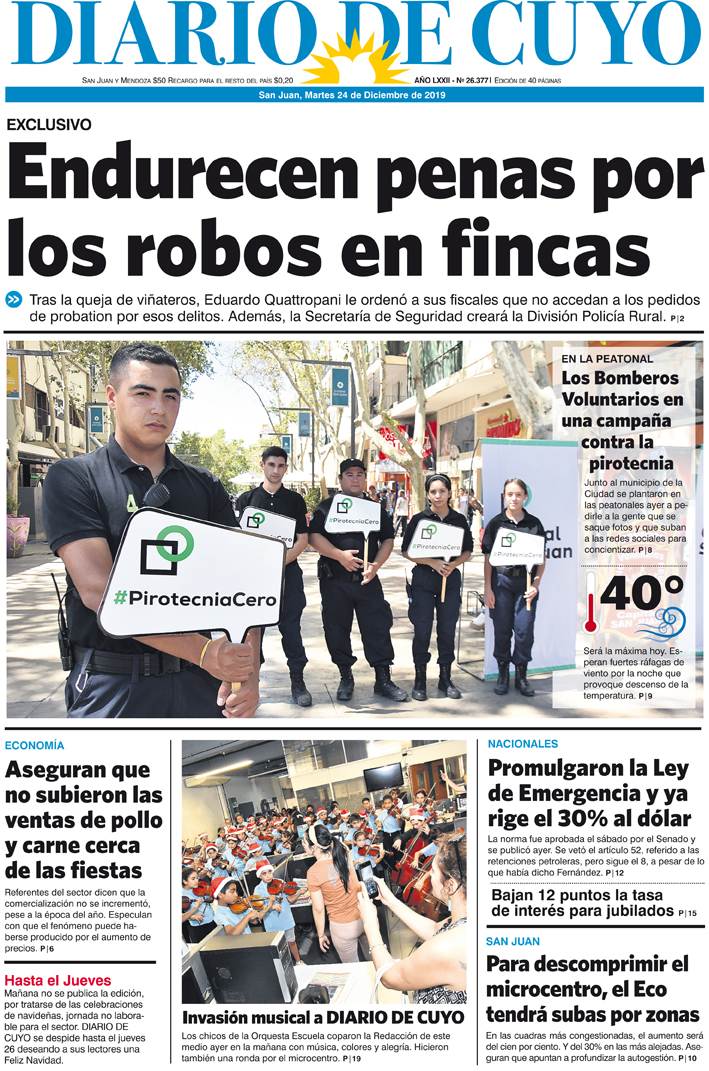 Diario de Cuyo | HOME | Noticias | Tapa Edición Tapa Edición 24 de Diciembre de 2019 Por Redacción Diario de Cuyo 23/12/2019 · 0:00 Escuchar la noticia Escuchar la noticia Your browser doesn’t support HTML5 audio Tapa Edición Ver los comentarios ›
