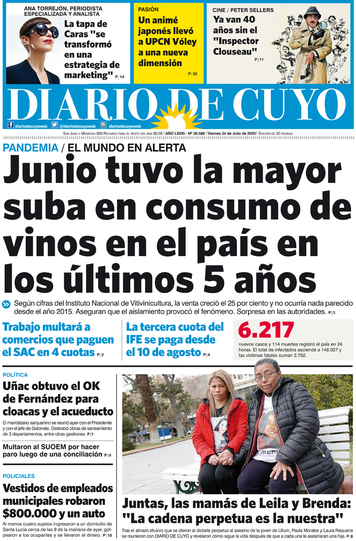 Diario de Cuyo | HOME | Noticias | Tapa Edición Tapa Edición 24 de Julio de 2020 Por Redacción Diario de Cuyo 23/07/2020 · 0:00 Escuchar la noticia Escuchar la noticia Your browser doesn’t support HTML5 audio Tapa Edición Ver los comentarios ›