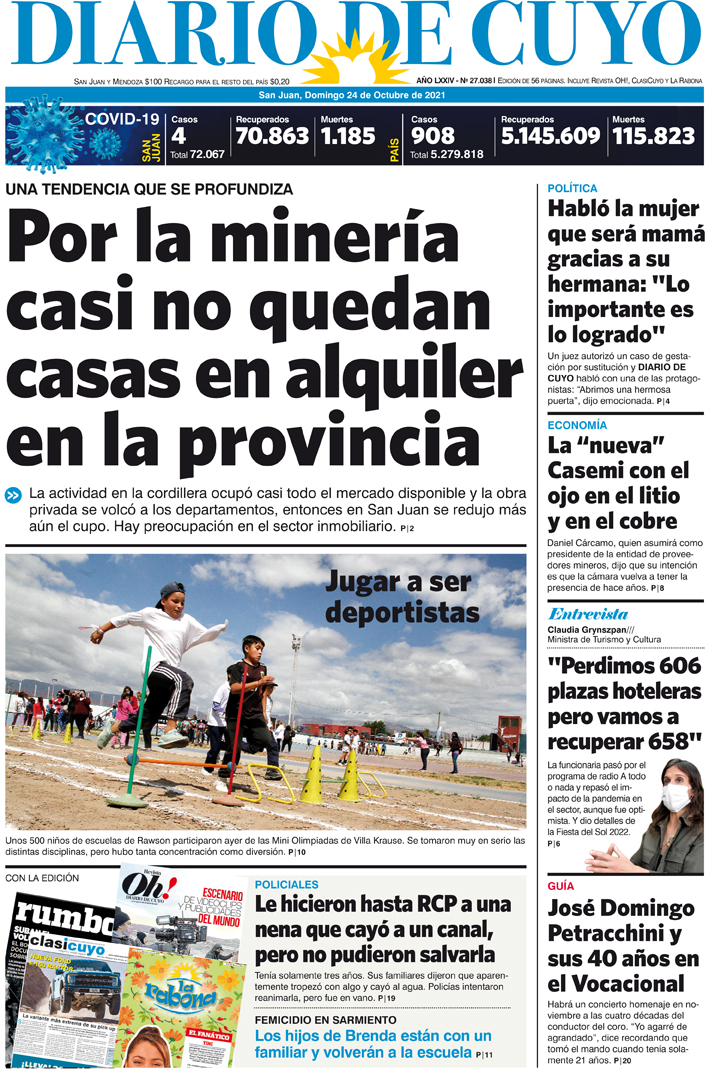 Diario de Cuyo | HOME | Noticias Tapa Edición 24 de Octubre del 2021 Por Redacción Diario de Cuyo 23/10/2021 · 0:00 Escuchar la noticia Escuchar la noticia Your browser doesn’t support HTML5 audio Ver los comentarios ›