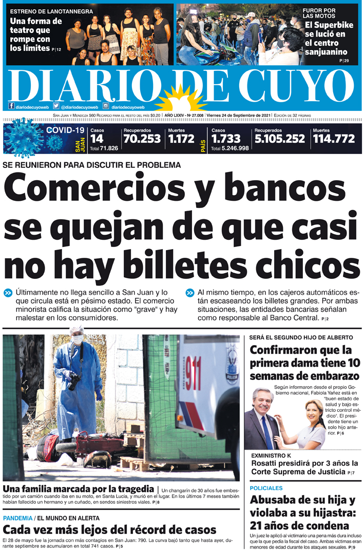 Diario de Cuyo | HOME | Noticias Tapa Edición 24 de Septiembre del 2021 Por Redacción Diario de Cuyo 23/09/2021 · 0:00 Escuchar la noticia Escuchar la noticia Your browser doesn’t support HTML5 audio Ver los comentarios ›